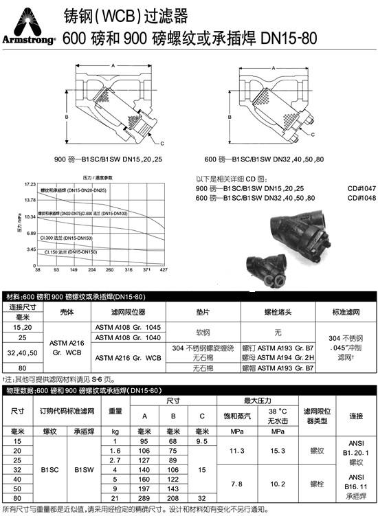 272kg和408kg的螺紋或承插焊過(guò)濾器,12.7mmC76mm